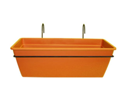 לבן טרקוטה ירוק כהה פחם +1אדנית פלסטיק לתליית עציצים על מעקה דגם גפן 52 ס"מ, כולל מתקן ברזל לתלייה וצלחת ניקוז פנימית
