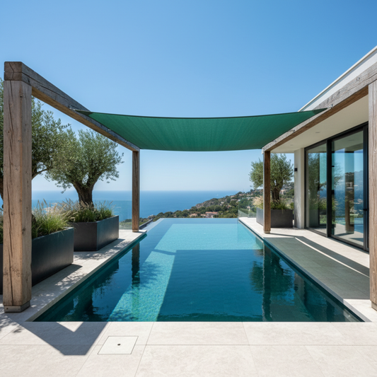 רשת צל מרובעת 6X6 מטר בצבע ירוק עם טבעות אחיזה, 90% הצללה