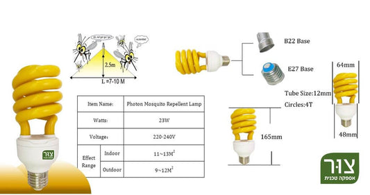 נורה לדחייה והרחקת יתושים ומעופפים, יעילות מוכחת! 23W אור צהוב