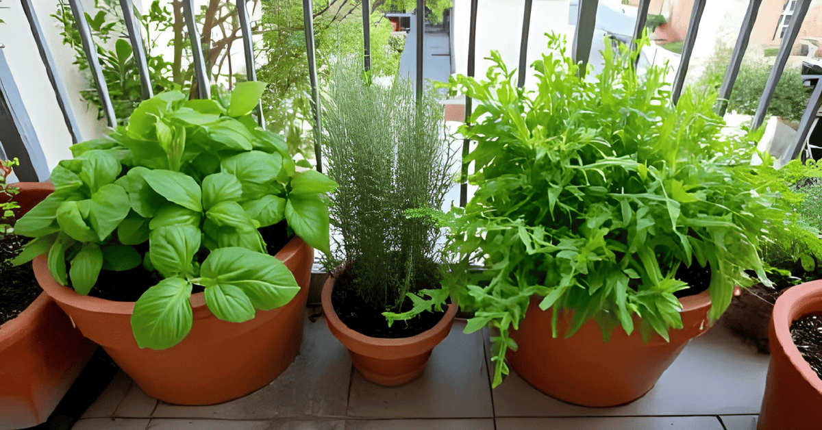 השוואת צמחי תבלין באדניות גדולות