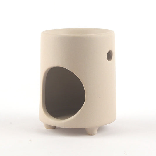 מבער שמנים ארומטיים מחרס בצבע קרם חמים בעיצוב גלילי עם רגליים ופתח עגול 8×10 ס"מ- להפצת ריחות נעימים וטבעיים בחלל הבית