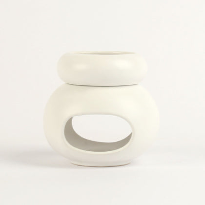 מבער שמנים מעוגל מחרס, 10 ס"מ בצבע לבן קלאסי, להפצת ריחות נעימים בחלל הבית, מורכב משני חלקים נשלפים ונוחים לשימוש
