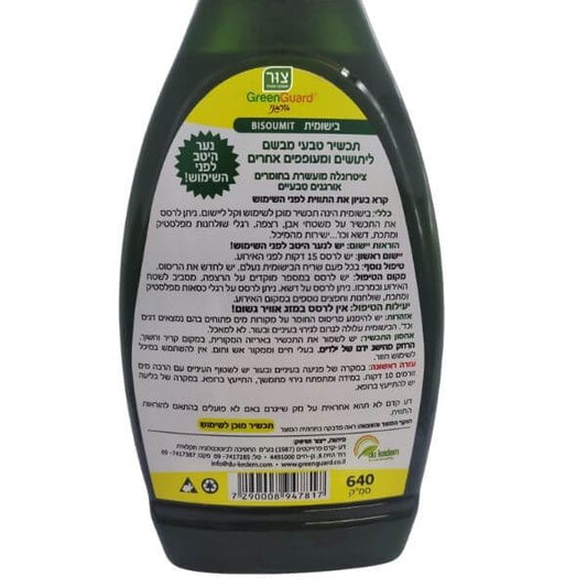 בישומית, תכשיר מבשם אורגני להגנה מיתושים, מורכב מחומרים טבעיים ואורגנים, 640 סמ"ק