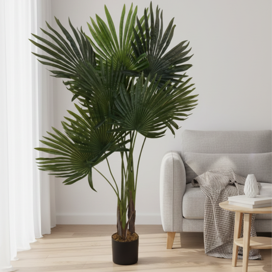שני מטר גובה. גזע דק. עלים שנפתחים כמו מניפה. שמנו אותו בפינה - וזהו. כל המרפסת השתנתה. בלי לשבור קירות, בלי שיפוץ, בלי אדמה, בלי לחשוב פעמיים. פתאום יש אווירה, פתאום יש סטייל, פתאום המרפסת מצטלמת טוב.