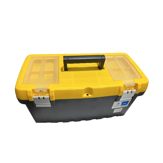 ארגז כלים 19 אינצ' עם סוגר אלומניום 48X26 ס"מ, כולל מגש פנימי ו2 תאים שרופים במכסה
