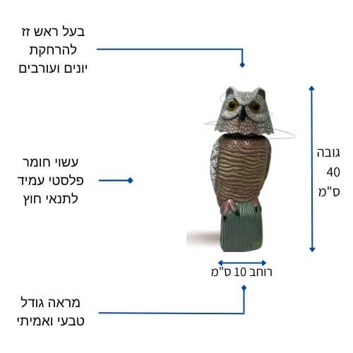 דחליל דמוי ינשוף ראש זז להרחקת יונים ועורבים מראה גדול ואמיתי