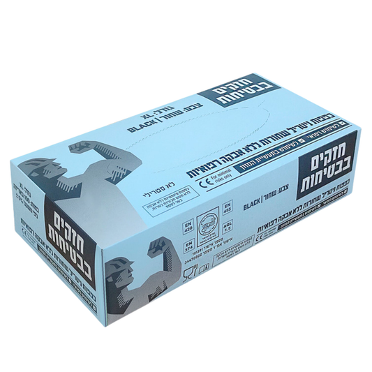 100 יח' כפפות ניטריל שחורות מקצועיות הרקולס – ללא אבקה (מידות L, XL)