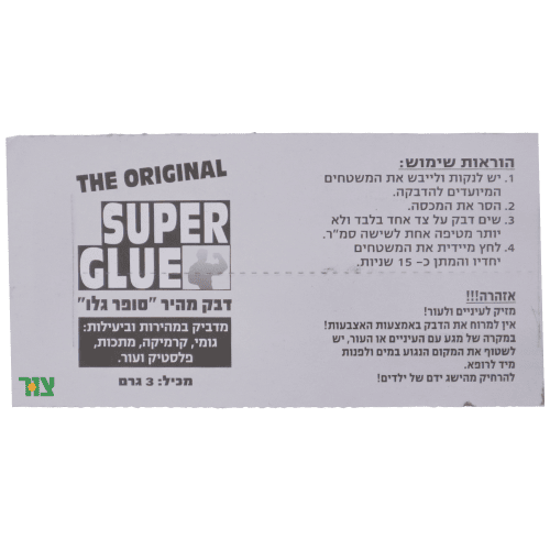 דבק עוצמתי "סופר גלו" המקורי 3 גרם להדבקה מהירה וחזקה