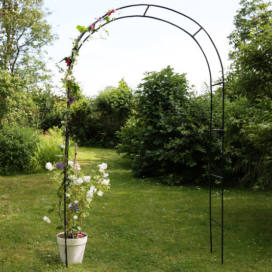 קשת תמיכה מרהיבה ממתכת לצמחים מטפסים רחבה במיוחד 150 ס"מ בגימור שחור, יכול לשמש כשער כניסה לגינה