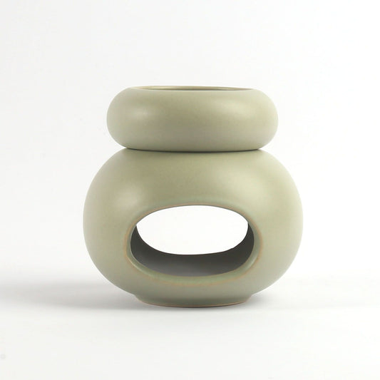 מבער שמנים מעוגל מחרס, 10 ס"מ בצבע ירוק, להפצת ריחות נעימים בחלל הבית, מורכב משני חלקים נשלפים ונוחים לשימוש