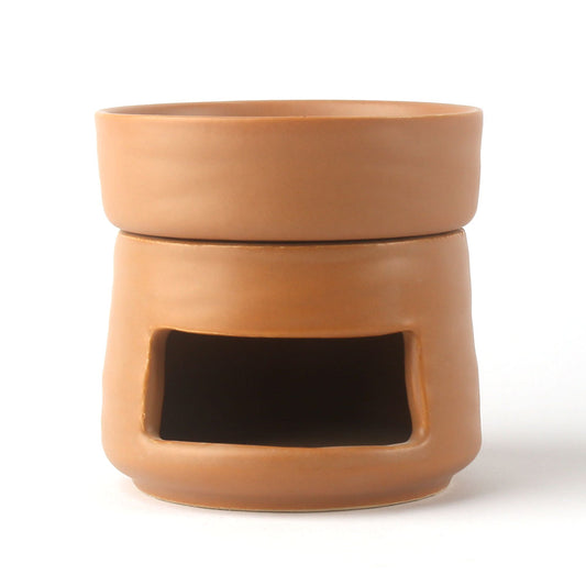 מבער שמנים ארומטיים מחרס בצבע חום אדמה בעיצוב גלילי קלאסי 10 ס"מ עם פתח מלבני רחב - ליצירת אווירה רגועה ונעימה בבית