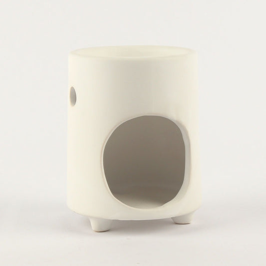 מבער שמנים ארומטיים מחרס לבן בעיצוב גלילי עם רגליים ופתח עגול 8×10 ס"מ- להפצת ריחות נעימים וטבעיים בחלל הבית