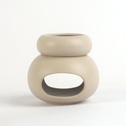 מבער שמנים מעוגל מחרס, 10 ס"מ בצבע אבן, להפצת ריחות נעימים בחלל הבית, מורכב משני חלקים נשלפים ונוחים לשימוש