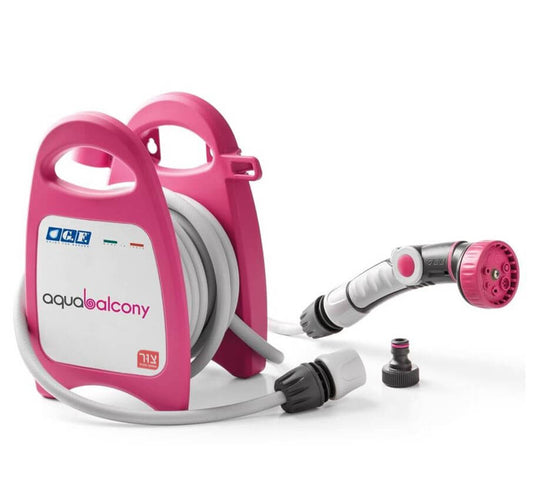 גלגלת השקיה - צינור 10 מטרים, אקדח השקיה ומחברים מהירים - צבע ורוד