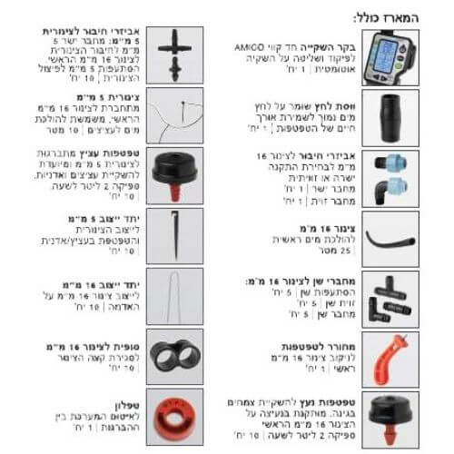 ערכת השקיה לגינה הפרטית 25 מטר – מערכת השקיה מתקדמת הכוללת צנרת, אביזרים וצינור 16 מ"מ