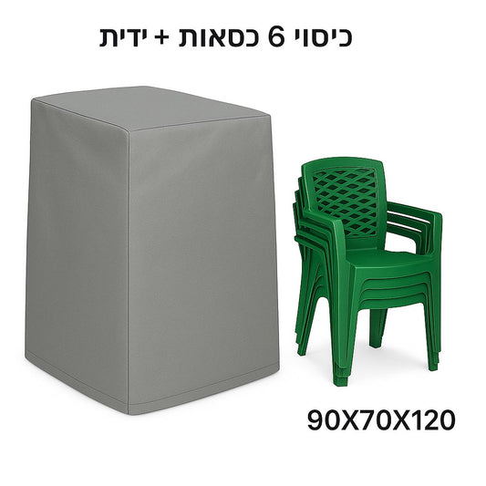 כיסוי יוטה חזק לכיסאות גינה עם ידיות | עמיד במים, שמש ורוחות | 70x90x120 ס"מ – מגן מושלם ל-4 כיסאות