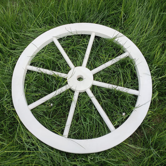 זוג גלגלי נוי מעץ אשוח איכותי, קוטר 60 ס"מ לעיצוב הגינה - גוון לבן