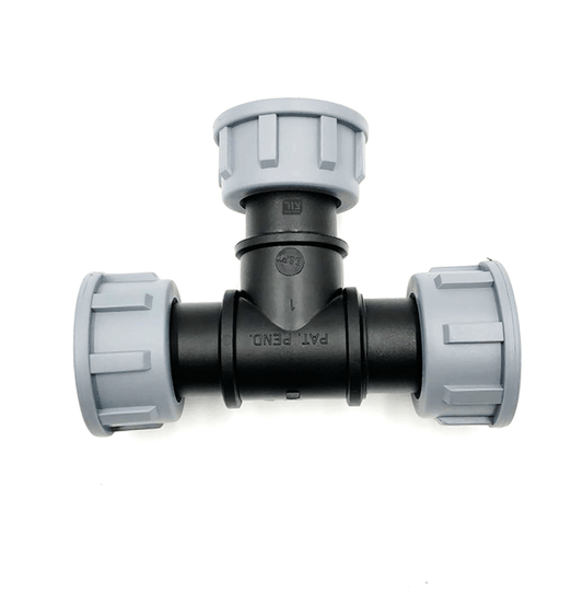 מחבר T פלסטיק לחיבור צינורות - 2x25 מ"מ + 16 מ"מ