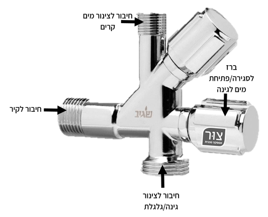 ברז זוויתן שגיב (ניל) משולב לחיבור 2 נקודות מים מתאים למדיח, כביסה ועוד