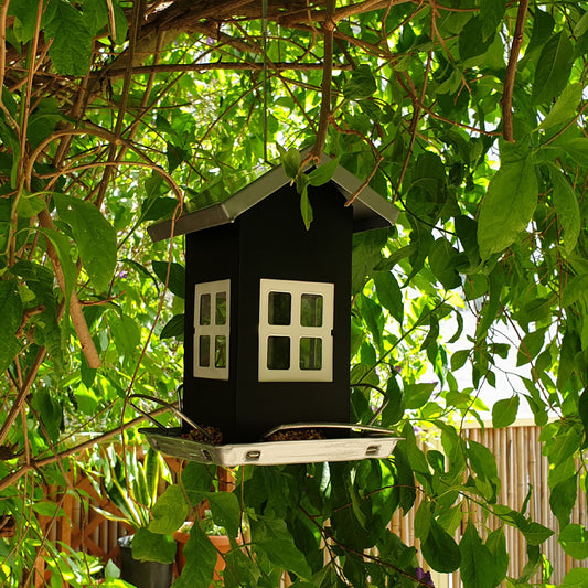 מתקן האכלה איכותי ומעוצב לציפורים בגוון כסוף-שחור 25X14 ס"מ