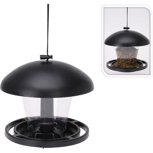 מתקן האכלה לציפורים בצבע שקוף עם גג שחור 23X10 ס"מ