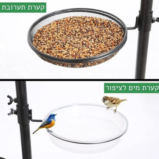 תחנת האכלה לציפורים - 3 מתלים, 2 קערות, גובה 190ס''מ