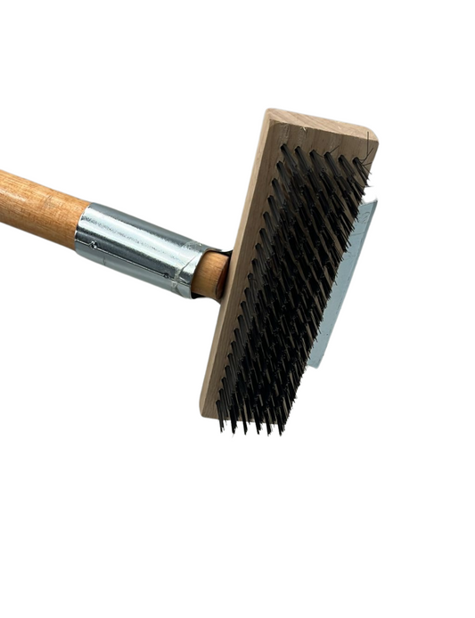 מברשת מקצועית לניקוי מנגל וגריל, מבנה עמיד במיוחד לשימוש ממושך, עם ידי עץ ארוכה