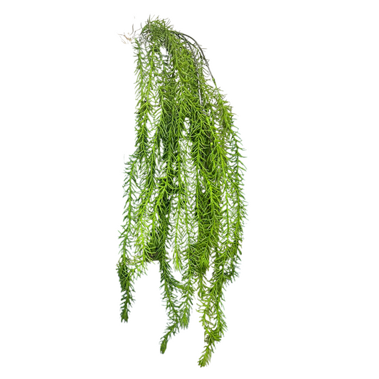 צמח מלאכותי נשפך עם עלי מחט כולל עציץ וחוטי תלייה טבעיים - פתרון עיצובי מושלם לכל חלל בבית ובמשרד!