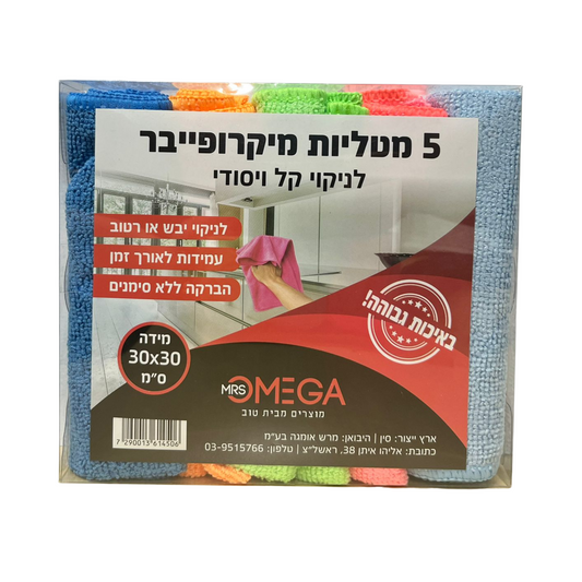 מארז 5 מטליות מיקרופייבר 30×30 ס"מ בצבעים שונים לניקוי קל ויסודי של כל סוגי המשטחים