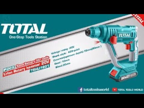 פטישון אלחוטי, עצמתי, 5100 דפיקות/דקה, לקידוח בבטון מזויין, כולל סוללה 20V 2.0Ah, מטען ומקדחים