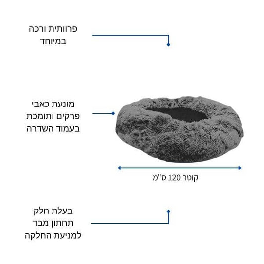 מיטה פרוותית לכלב - 100 ס''מ, בצבע אפור, רכה ומחממת, מותאמת לשהייה ארוכה ותומכת בכלב