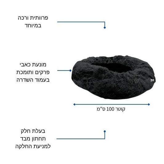 מיטה פרוותית לכלב שחורה 120 ס''מ רכה ומחממת מותאמת לשהייה ארוכה ותומכת