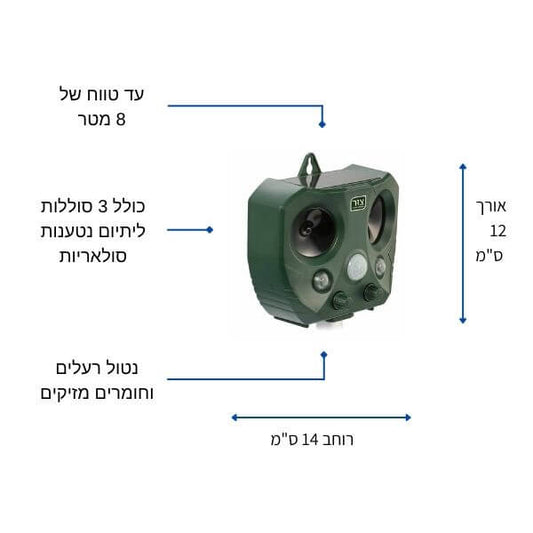 ינשוף סולארי - הרחקת יונים וציפורים אולטרה-סוני חזק במיוחד