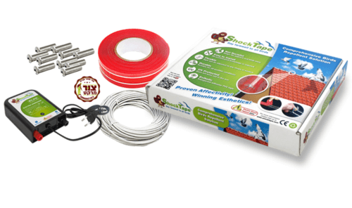שוק טייפ, 10 מטר- רוחב 4 ס"מ ערכה מלאה, הרחקת יונים אלקטרונית באמצעות פס המשדר מכות חשמל קלות