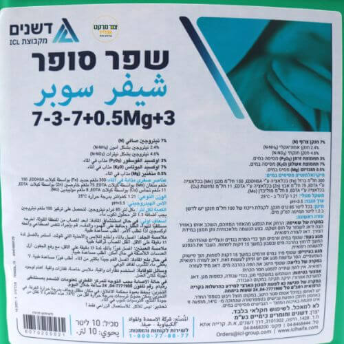 דשן נוזלי שפר סופר, מועשר בברזל ואשלגן, מעודד צמיחה של צמחים ועצים לגינה פורחת, 10 ליטר
