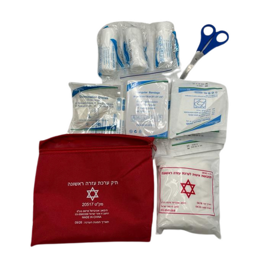 - מגיעה עם כל מה שנדרש, כולל תחבושות, פלסטרים, חומרי חיטוי, מספריים רפואיים ועוד.