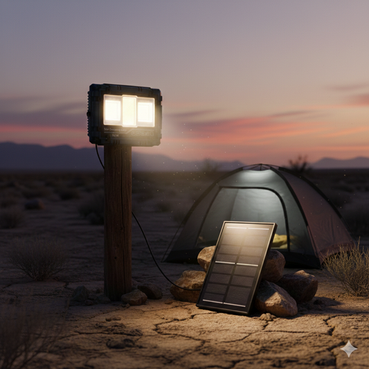פנס הצפה סולארי LED נטען עוצמתי ונייד IP66 – תאורת חוץ חזקה לגינה, קמפינג וחירום