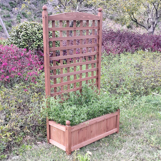 מעמד אדנית מעץ עם רשת טיפוס אינטגרלית - פתרון 2 ב-1 לגידול צמחים מטפסים והפרדת שטחים