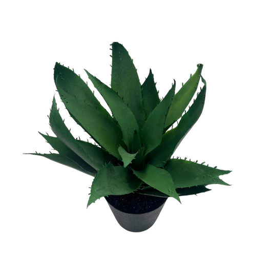 קקטוס אלוורה מלאכותי בגובה 29 ס"מ עם עלים משוננים בעציץ פלסטיק שחור יוקרתי