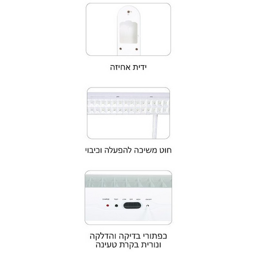 תאורת חירום קבועה וניידת, עד 4 שעות עבודה, 90 LED, עוצמתית במיוחד, סוללת ליתיום חזקה ועמידה