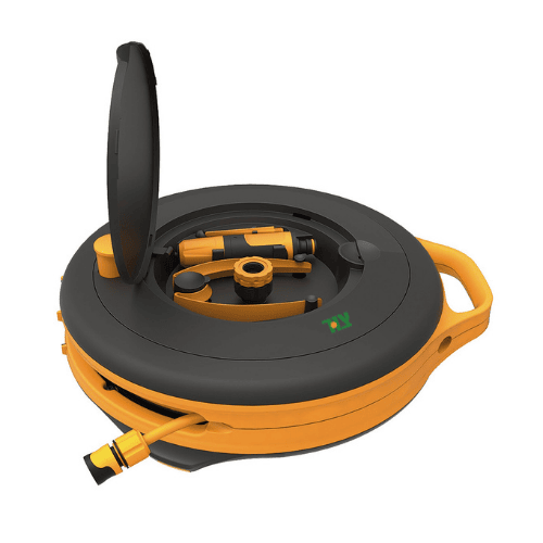 גלגלת השקיה - צינור 10 מטרים, אקדח השקיה ומחברים מהירים - צבע חום