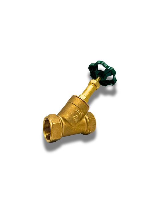 ברז נחושת איכותי יועם אלכסוני 1" לבקרת זרימת מים במערכות השקיה גדולות וצנרת כבדה