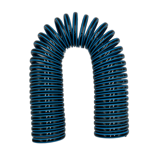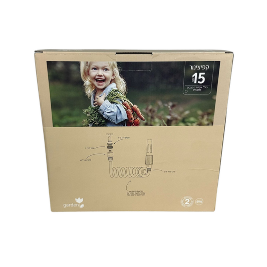 צינור השקיה קפיץ קל ונוח לשימוש, נמתח לאורך של 15 מטר וחוזר למקומו לאחר השימוש, כולל מחברים מהירים ואקדח השקיה מתכוונן