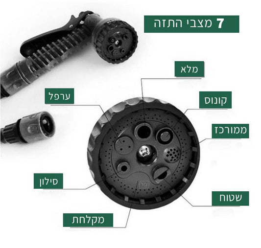 צינור השקיה מתכווץ 2.5-7.5 מטר, פתרון חכם ונוח להשקייה, כולל אקדח מים איכותי 7 מצבי השקיה