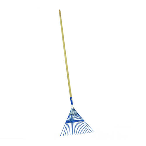 מגרפת דשא ועלים 35 ס"מ מקצועית בצבע כחול, קלה ונוחה לשימוש + מקל עץ