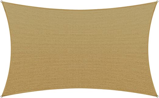 רשת צל מרובעת 5X4 מטר בצבע בז' עם טבעות אחיזה, 140 גרם למטר, מחוזקת