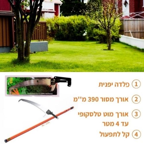 מסור גבהים ידני טלסקופי באורך עד 4 מטר עם מוט נשלף 3 שלבים