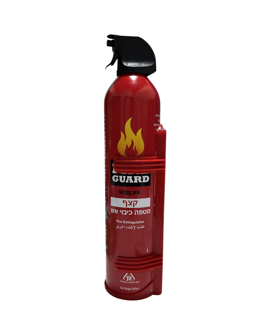 מטף כיבוי אש 0.5 ק"ג, לכיבוי אש בחירום, לפי תקן ישראלי 1012 ותקן בריטי, כולל מתלה להקנה קלה