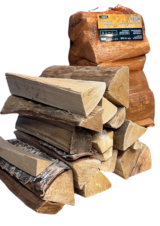 עצים למדורה ולהסקה כ 21 ליטר - שק עצי לִבְנֶה טבעי להסקה איכותי במיוחד, עצים לקמין הדלקה מהירה