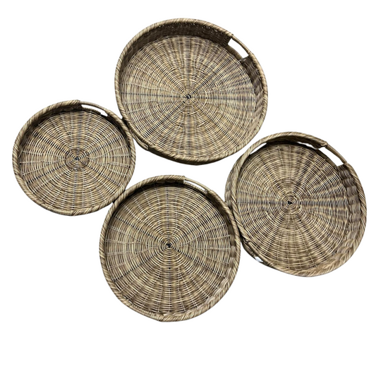 סט 4 מגשי נצרים עגולים דקורטיביים בגדלים מדורגים לעיצוב והגשה אלגנטיים ומיוחדים